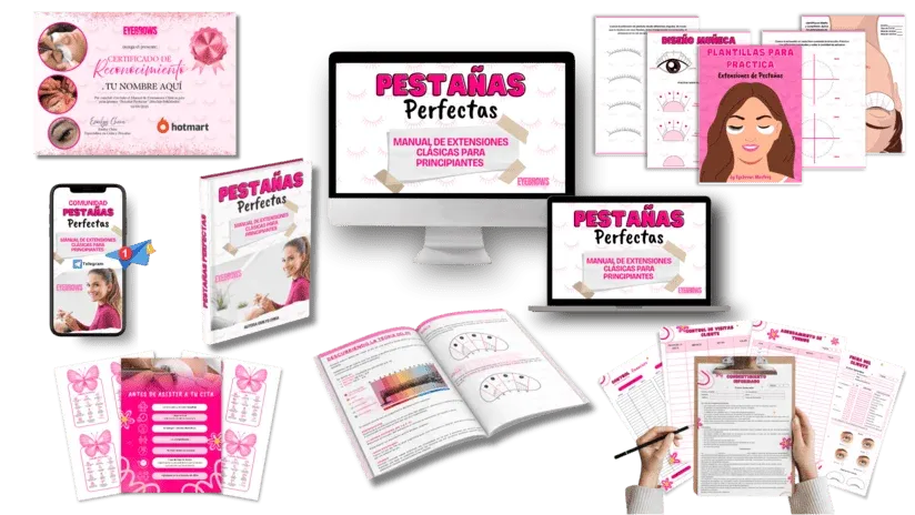 Con nuestro manual completo, que incluye una guía teórica detallada, plantillas de práctica y valiosos bonos adicionales, podrás dominar los conceptos básicos y desarrollar habilidades prácticas en un tiempo sorprendentemente corto. Dependiendo de tu ritmo, podrías estar aplicando extensiones de pestañas con confianza en tan solo unos días de estudio intensivo o en pocas semanas con práctica constante. Recuerda que la clave para perfeccionar tu técnica es la dedicación y la práctica regular, ¡y este manual está diseñado para apoyarte en cada paso del camino!