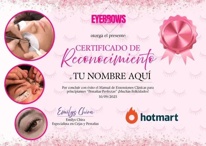 Al finalizar, obtendrás tu Certificado de Reconocimiento como Extensionista de Pestañas.